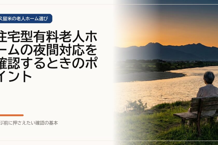 久留米で住宅型有料老人ホームを選ぶときは、昼間の見学だけでは見えにくい夜間体制まで確認しておくことが大切です。夜の不安を具体的な確認項目に落とし込んでおくと、家族に合う施設かどうかを落ち着いて判断しやすくなります。