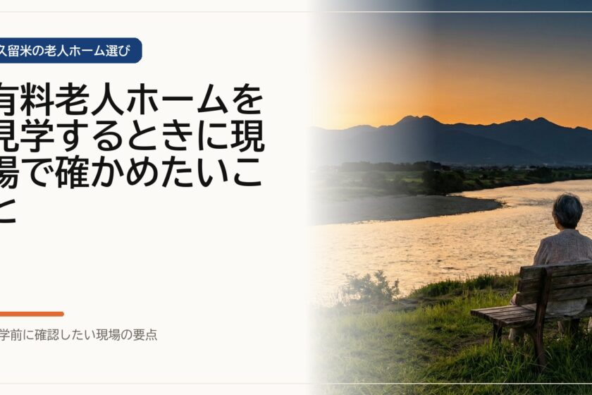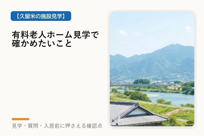 この記事は、これから久留米で有料老人ホームを見学する方向けに、現場で確かめたいポイントを整理したものです。質問項目を増やすより、生活の場面をどう見るかに意識を向けることで、見学後の判断材料が増えやすくなります。